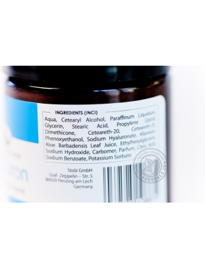 Uzlabo ādas elastību, aizsargā ādu no novecošanas un no kaitīgas apkārtnes iedarbības.Krēma sastāvā esoša hialuronskābe aizkavē ādas virsējā slāņa nocietināšanās procesus, izvada toksīnus, atjauno ādas mitrumu un elastību un neļauj rasties grumbām un pārējiem novecošanas procesiem, uzlabo ādas reģenerāciju. Tādēļ, ka hialuronskābe uzsūc īpaši daudz ūdens, tā ir īpaši svarīga audu hidratācijai, šūnu funkcijām.