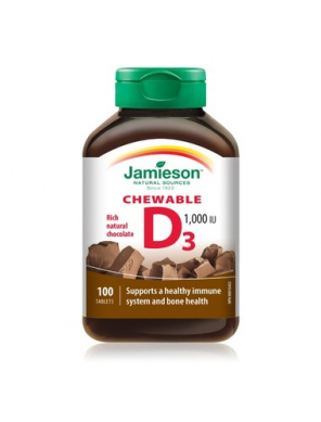 Jamieson Vitamīns D3 Košļājamā tablete 1000 SV ir ar garšīgu dabīgo šokolādes aromātu. D vitamīnam ir svarīga loma labas veselības uzturēšanā, vienlaikus veicinot kaulu un zobu attīstību un palīdzot organismam efektīvi absorbēt kalciju.