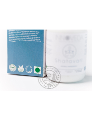 1 kapsulā / 2 kapsulās / 4 kapsulās: Šatavari, parastais sparģelis (Asparagus racemosus) sakņu pulveris 400 mg / 800 mg / 1600 mg;