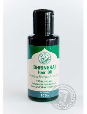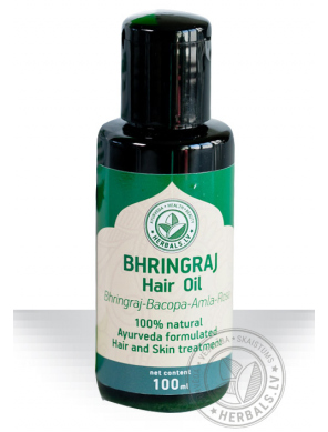Bhringraj stiprinoša matu eļļa ir izgatavota pēc Ajūrvēdas receptes un novērš matu izkrišanu, iekļūstot dziļi matu saknēs un pašos matos, barojot tos no iekšpuses. Rezultātā Jūs iegūstiet garus, spēcīgus un spožus matus.