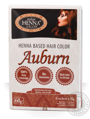 INDIAN HENNA SALON krāsa lieliski klājās uz matiem, nokrāsojot tos no saknēm līdz pat matu galiem. Lieliski nokrāso sirmos matus.