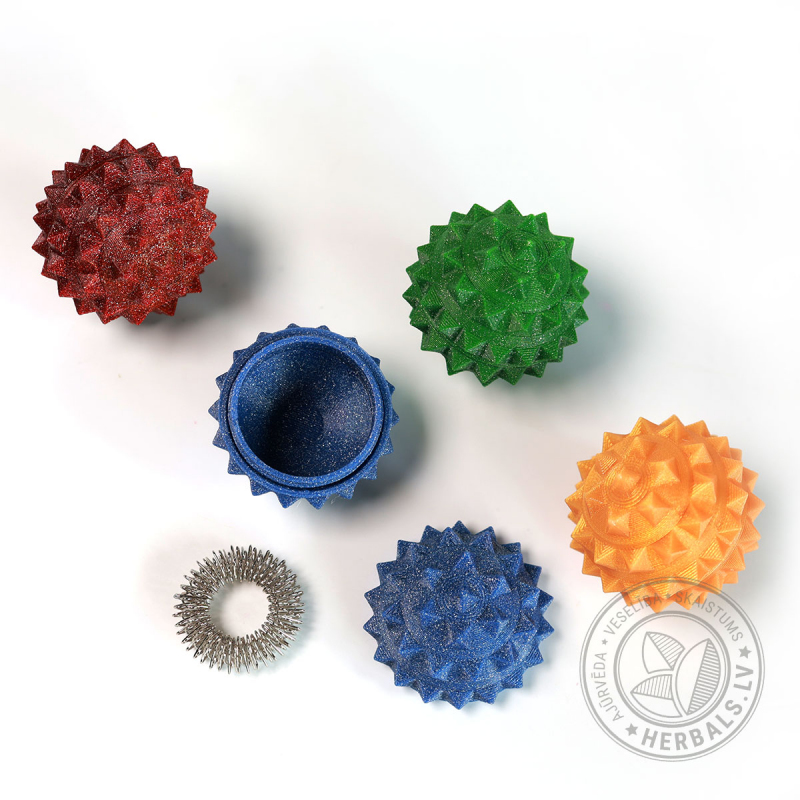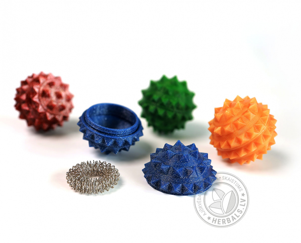 Lietošana: gredzenu uzvelk uz izvēlētā pirksta un intensīvi virpina uz augšu/leju līdz kamēr masējamais pirksts paliek sarkans. Masažieris nedrīkst stāvēt uz pirksta bez kustības. Gredzena masāžas procedūra ir patīkama, tai nav jāpieliek lielas pūles un tā ir nesāpīga. Masāžas bumbiņu izmanto iedarbojoties uz plaukstu un pēdu.