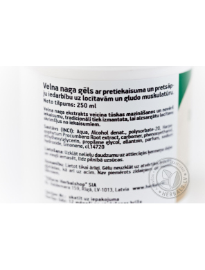 Velna naga gēls ar pretiekaisuma un pretsāpju iedarbību uz locītavām un gludo muskulatūru.