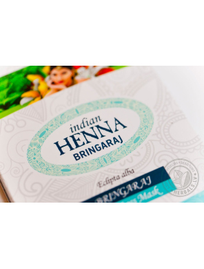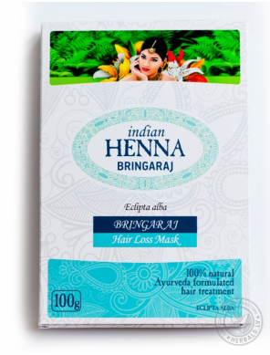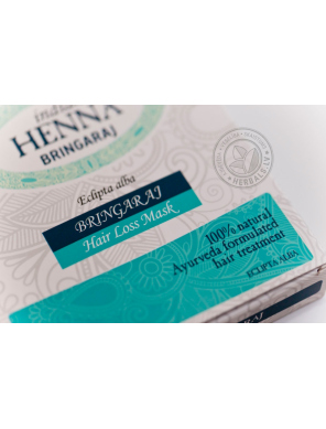 100% растителна маска за коса, създадена по рецепти на Аюрведа. Използва се за предотвратяване на прекомерния косопад, за възстановяване и кондициониране на косата. Брингарадж е едно от най-известните и популярни растения в Индия, използвано за грижа за косата. Наричан „кралят на косата“, този растителен прах подпомага растежа на силна и здрава коса, помага да се запази естественият цвят и блясък на косата и предотвратява преждевременното побеляване.