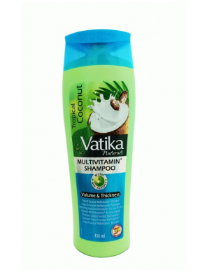 Шампоанът за коса Dabur Vatika с кокос, рициново масло и къна спомага за увеличаване на обема и плътността на косата.