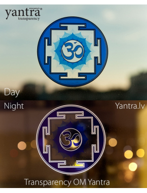 Transparent Om Yantra ver 2.0. Сaurspīdīga uzlīme Jantra, ko var uzlīmēt uz stikla vai jebkuras citas gludas virsmas: logs, automašīnas stikls, stikla durvis, spoguļi, logi, ledusskapis.