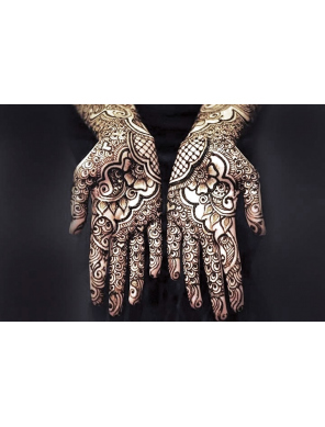 After drying and removal of the paste from the skin, the drawing is pale orange. Over the next 48 hours, it will darken and eventually become reddish brown. Preferably in the first 12 hours of drawing to avoid contact with water. On average, henna can hold from 3-7 days on the chest or back up to 1-3 weeks on the hands or feet. After that traces of henna disappear.