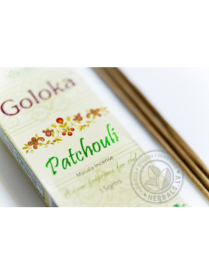 Goloka Patchouli Incense Sticks in the best export quality from India. Goloka Patchouli masala incense sticks are prepared using patchouli oil & leaves powder and offers herbal effect.