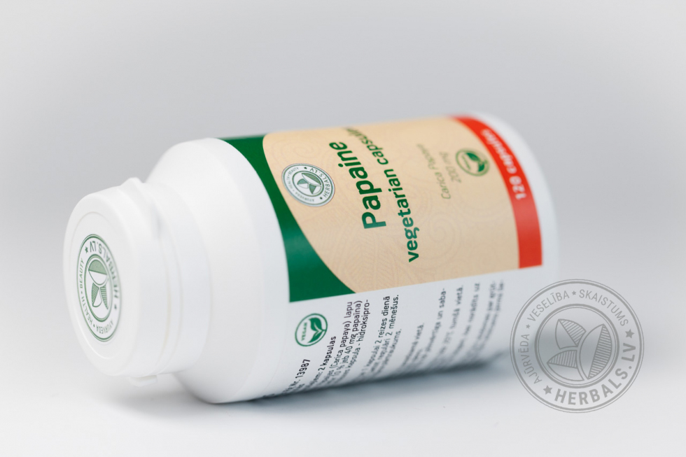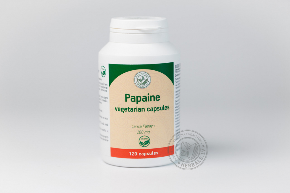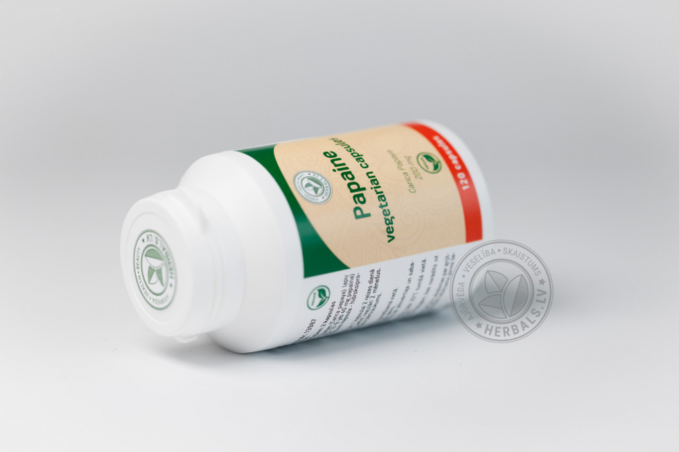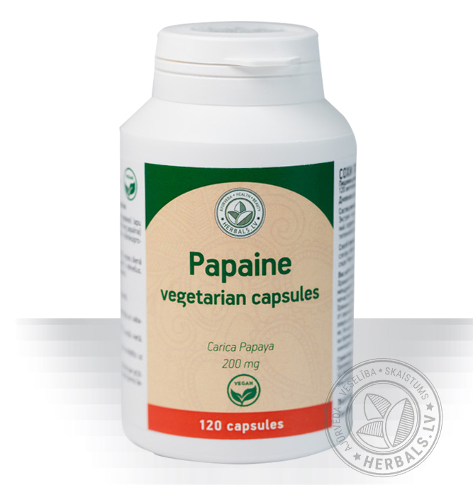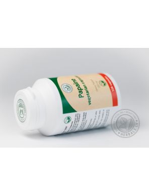 Papain in vegetarian capsules deliver the pure enzyme right to the stomach where it can do its work. These capsules contain no sugar, no artificial colors or unnecessary additives, just pure protein-digesting papain.