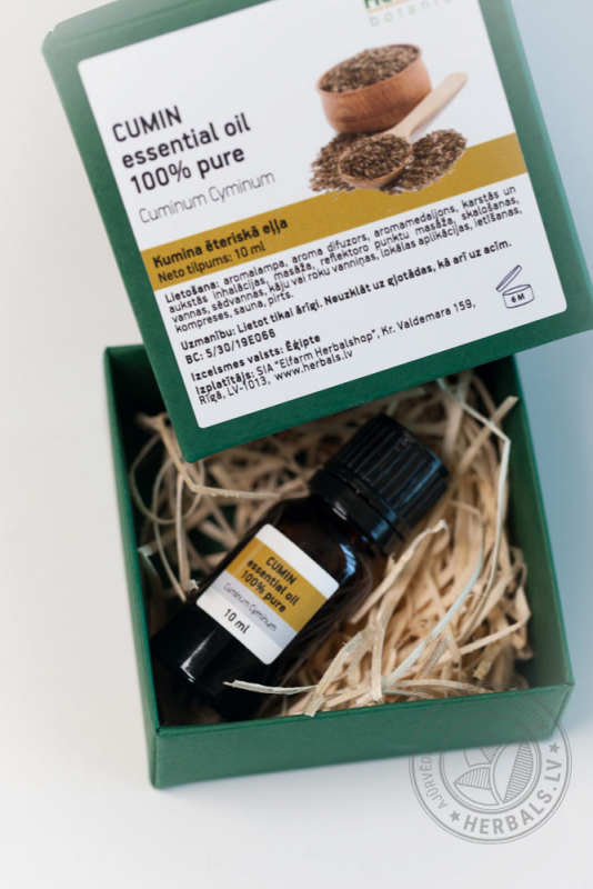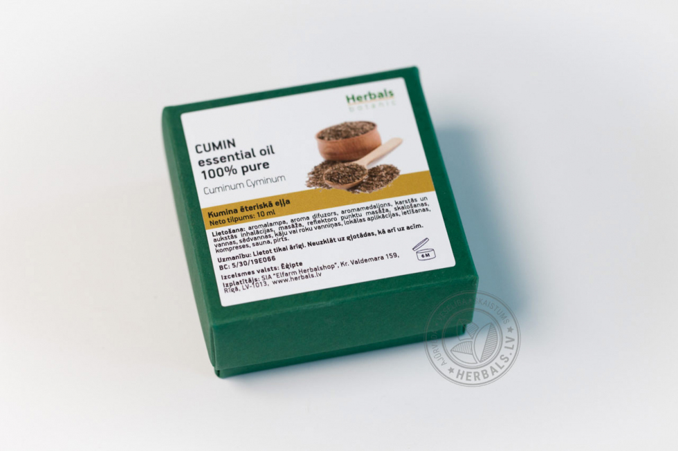 получают путем паровой дистилляции из семян растения. Эфирное масло тмина – природный консервант.