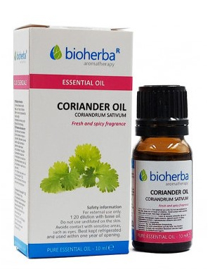Масло кориандра известно в косметологии как средство, регенерирующее кожу, стимулирующее заживление ран и ожогов, устраняющее шелушение.