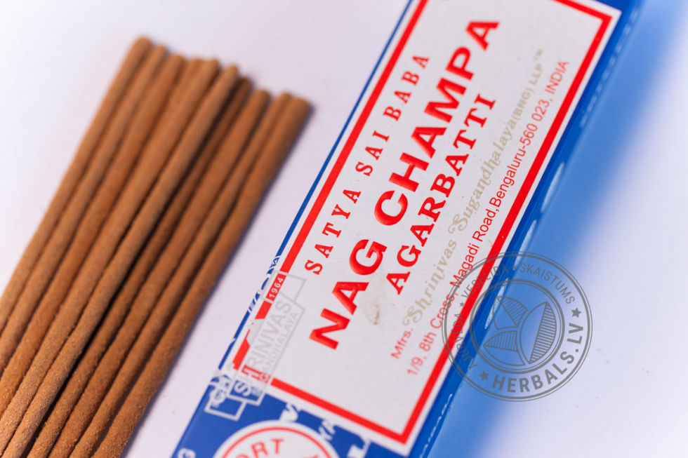 Nag Champa – самые известные и часто используемые благовония серии Satya Sai Baba. Уникальный аромат Nag Champa заряжает оптимизмом и возвращает вкус к жизни, выводит из депрессивных состояний. Помогает восстановить естественные биоритмы сна и бодрствования, избавляя от бессонницы или повышенной сонливости.