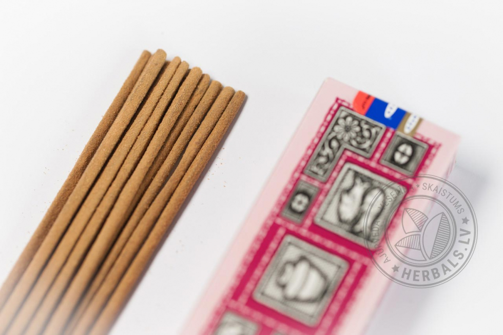 Как использовать: Чтобы насладиться приятным запахом, подожгите кончик ароматной палочки, дайте ей разгореться, а затем задуйте пламя. Поместите палочку в специальную подставку, где она будет тлеть, источая аромат. Одна палочка весит около 1 грамма и горит в течение 45 минут.