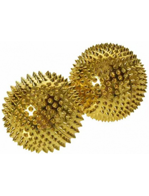В комплект входят два магнитных массажных шарика золотого цвета. Заостренные шипы оказывают приятное воздействие на кожу, не повреждая ее. Твердые шарики выдерживают большее давление и поэтому идеально подходят для оздоровительного массажа.