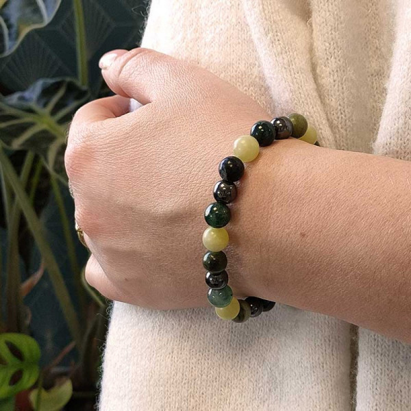 В сочетании эти камни приносят процветание и успех во всех сферах жизни. Цвета счастливого браслета варьируются от зеленоватых оттенков, от самого чистого с цитрином до самого непрозрачного с гематитом. Этот браслет объединяет энергетические условия, благоприятные для материального и духовного обогащения. Носите этот браслет, чтобы процветать в финансовом, профессиональном или личном плане. Браслет удачи настолько силен, что энергия успеха распространяется везде, куда бы вы ни пошли! Это также побудит вас прислушиваться к своему внутреннему голосу и доверять себе во всех своих решениях. Сочетание его жемчужин раскрывает ваш творческий потенциал и проясняет разум, позволяя вам процветать.