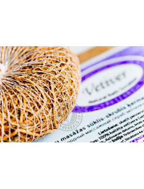 Применение:  Используйте как мочалку или массажное средство, в ванне и душе, а также бане и сауне, в сочетании с маслами, мылом и гелем для душа. Не снимайте внешнюю сеточку, иначе скраб разлезется и потеряет форму. При регулярном применении Ветивера Скраба может хватить на срок около года.