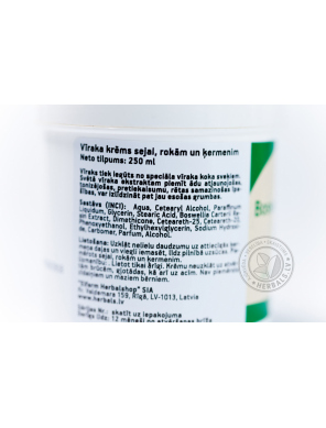 Ладан – растительная смола, выделяемая ладанными деревьями. Благодаря ладану в составе, крем обладает регенерирующими, противовоспалительными и увлажняющими свойствами. Ускоряет процессы микроциркуляции в коже, улучшает трофику тканей. Кожа становится более плотная и увлажнённая.