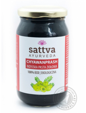 Чаванпраш Sattva является уникальным продуктом, содержащим только натуральные компоненты и изготовленным на основе свежих плодов амлы (индийского крыжовника), что намного усиливает его антиоксидантые свойства и обеспечивает мягкость вкуса.