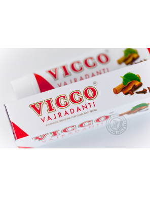 Паста VICCO содержит экстракты и эфирные масла целого ряда лечебных растений, среди которых: ажгон, акация аравийская, акация катеху, аккал-кхада, гвоздика, грецкий орех, зизифус настоящий, индийская смородина, кора деревьев и кустарников (дуба, индийской ежевики, кофейного дерева, мушмула), корень сарспариль, корица, лаванга, машжишта, перец кубеба, солодка, трипхала, финик уюба и цезальпиния.