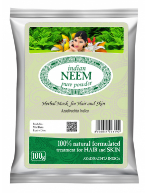 - Для волос: Ним, мощный антисептик, эффективно и быстро оздоравливает кожу головы, устраняя перхоть, шелушение и зуд, предотвращают их появление. Улучшает микроциркуляцию и укрепляет луковицы. Поместите содержимое пакета в емкость. Смешайте часть порошка с теплой водой, сделайте пасту. Нанесите пасту на влажные волосы. Через 10-15 минут тщательно смойте водой.