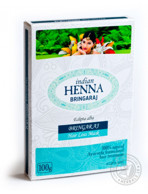 100% растительная маска для волос создана по рецептам Аюрведы. Используется для предотвращения чрезмерного выпадения волос, восстановления и кондиционирования волос. Брингарадж самое известное и популярное растение в Индии, применяющееся для ухода за волосами. Названный ‘’королем волос ‘’, этот растительный порошок способствует росту сильных, здоровых волос, помогает сохранить естественный цвет и блеск волос, предотвращает преждевременное поседение.