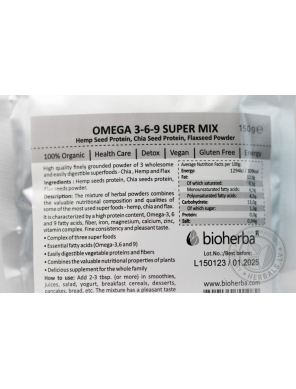 Смесь порошков семян сочетает в себе ценный питательный состав и свойства трех из наиболее часто используемых суперпродуктов — конопли, чиа и льна. Характеризуется высоким содержанием белка, омега-3, 6 и 9 жирных кислот, клетчатки, железа, магния, кальция, цинка, витаминного комплекса. Прекрасная текстура и приятный вкус.