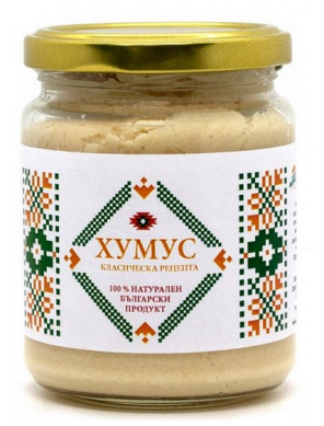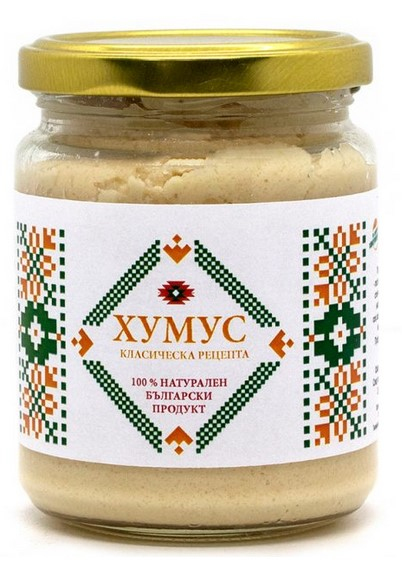 Ингредиенты: Нут отварной и мелко молотый из Болгарии, тахини кунжутная, подсолнечное масло, оливковое масло первого отжима, соль, сахар, чеснок, перец черный, тмин, лимонная соль.