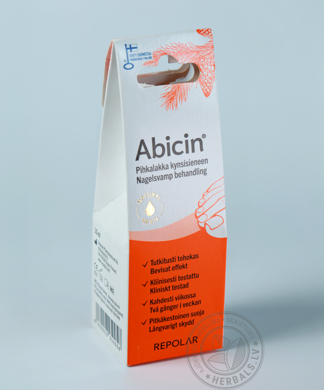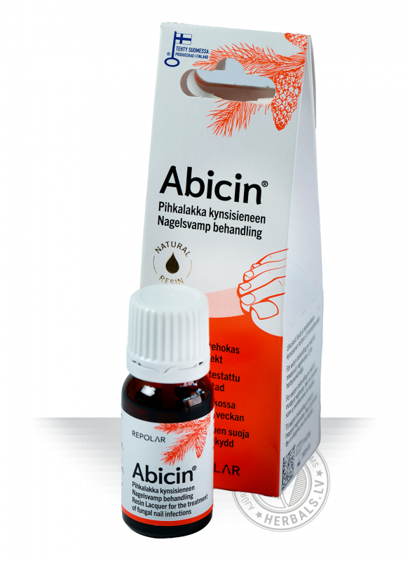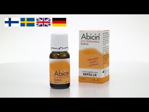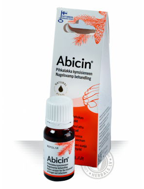 Abicin 30% ir a mixture of the resin of the Norway spruce (Picea abies) and a nail lacquer developed for medical purpoises. The resin content of the lacquer is 30% of the preperation.