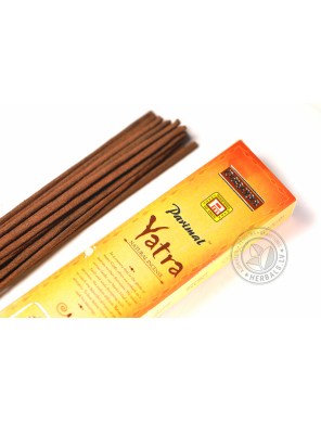 Yatra incense is a lovely sandalwood blend that has a divine sandalwood and vanilla like sweetness. The fragrance is complex with top notes that include musk and patchouli on a blended base of masala and sandalwood.