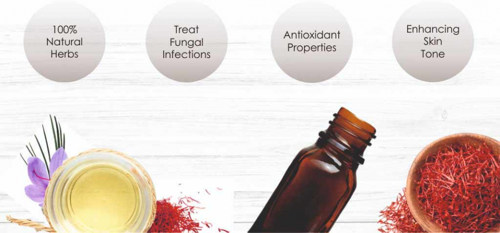 Cостав: Шафрановое масло (30%), Масло Белого Сандала (15%), Масло Красного Сандала (15%) , Кунжутное масло (10%), экстракты Лакрицы, Лотоса, Куркумы и Манджишты.