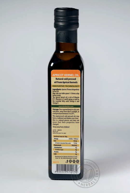 Польза масла абрикосовых косточек для здоровья обусловлена прежде всего его высоким содержанием витамина B17, который считается сильным природным союзником в борьбе с раком. Он уничтожает дефектные клетки, не разрушая здоровые ткани. Рекомендуется при хронических и детородных заболеваниях в сочетании с маслами черного тмина или конопли. Абрикосовое масло также содержит большое количество витаминов А, Е и группы В, а также незаменимые жирные кислоты Омега-6 и Омега-9, которые восстанавливают структурные повреждения клеточных мембран и блокируют воспалительные процессы.