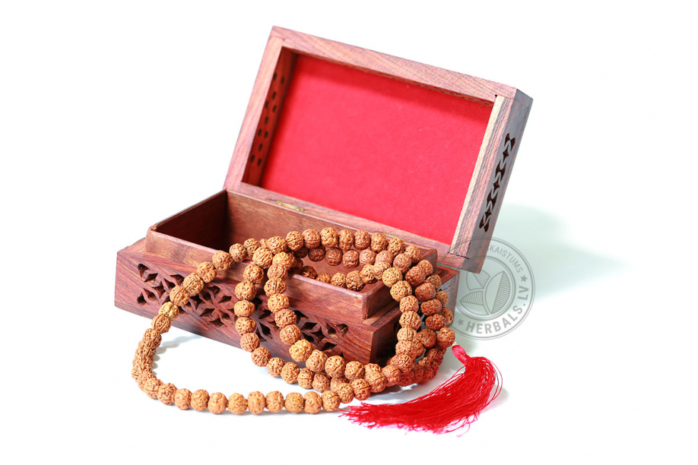 Внутри — 108 бусин рудракши, каждая из которых хранит в себе энергию священного дерева Elaeocarpus ganitrus. Эти чётки веками использовались йогами и мудрецами для медитаций, молитв и обретения внутренней силы.
