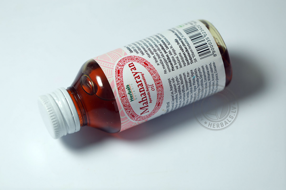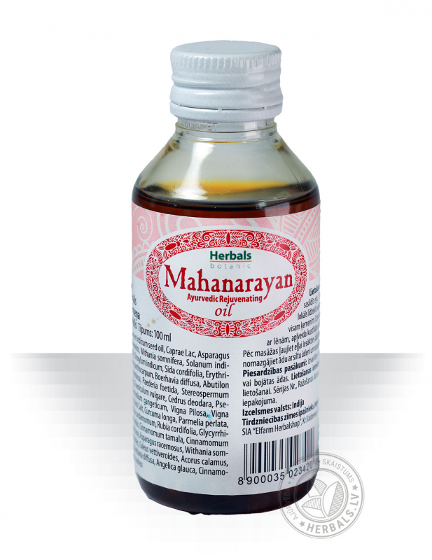 Маханараян Тайлам – многокомпонентное масло (содержит около 50 компонентов), одно из самых сильнодействующих в Аюрведе, которое используется в Индии на протяжении многих веков. Применяется при неврологических заболеваниях, хорошо расслабляет, восстанавливает силы, возвращает здоровый и крепкий сон, уравновешивает центральную нервную систему, поддерживает активность (особенно в преклонном возрасте). Масло можно использовать как для местного, так и общего массажа тела, исключая область головы. Считается, что средство способствует укреплению защитной энергетической оболочки человека (ауры).